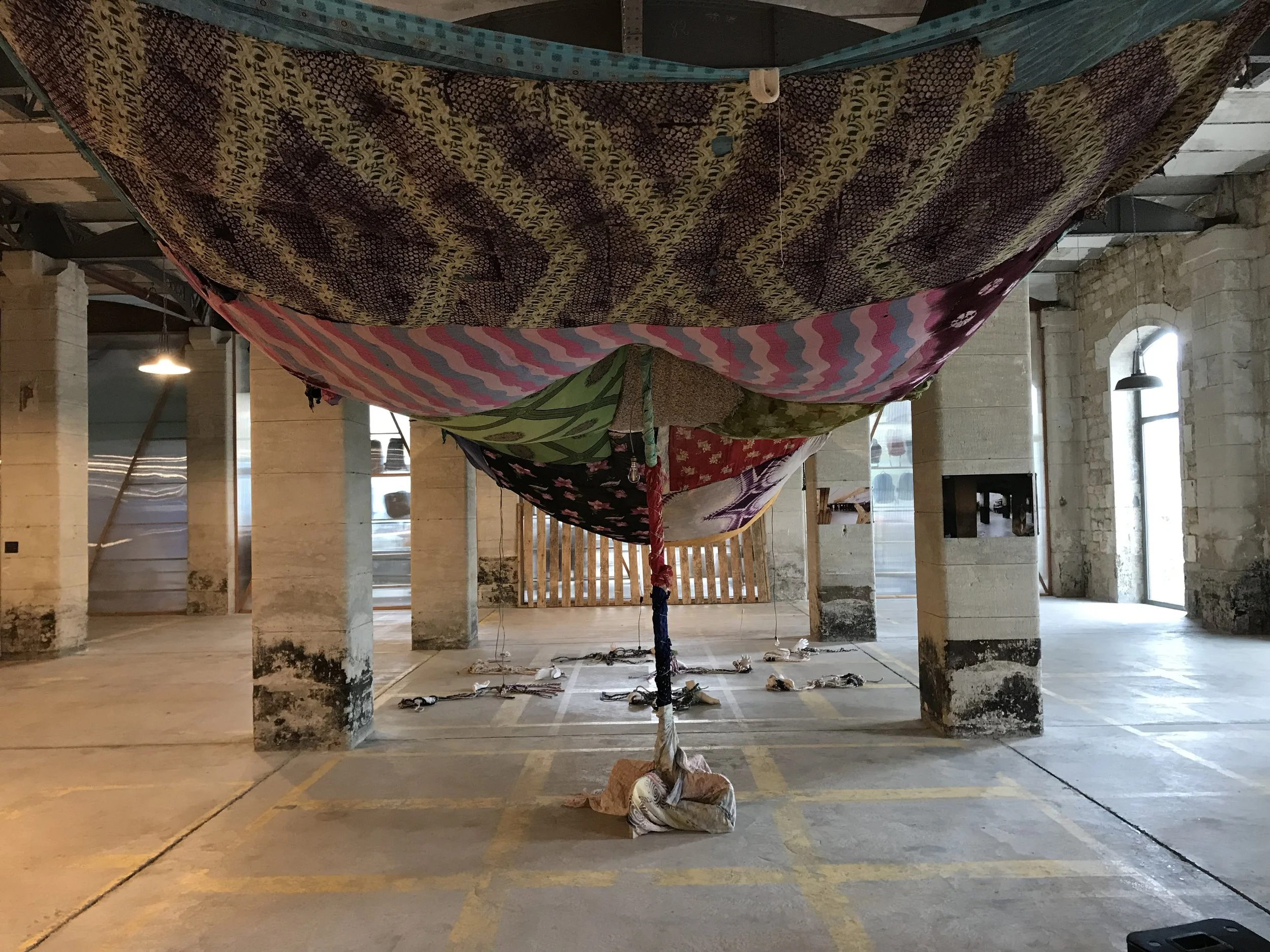 Nomadic garments, transformed into ropes, bind together casts of hands and feet. The assembly reveals an absence: that of bodies. The materials bear traces of gestures, movements and constraints, evoking erased trajectories and a history inscribed in the bond, tension and disappearance.